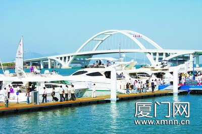 风光旖旎的五缘湾,一艘艘形态各异的游艇帆船开始“争奇斗艳”。昨天上午,备受关注的2009中国(厦门)国际游艇帆船展在五缘湾帆船港拉开帷幕,市人大常委会副主任黄诗福、副市长裴金佳、市政协副主席陈耀中等出席了展会的开幕仪式。 据了解,此次展会系2009厦门国际海洋周的重要活动之一,由厦门市人民政府主办,由中国船舶工业行业协会船艇分会、湖里区政府、厦门路桥建设集团、厦门游艇行业协会、厦门路桥五缘湾运营有限公司共同承办,将一直持续到11月3日。 昨日的五缘湾,就像是一个排满各式船艇的大超市。展会分别设置了大型船艇展区、小型船艇展销区、游艇配件展区、展会综合配套区等,陆上展位共180个,而水上展区面积也达到20000平方米。 2009游艇经济发展国际高峰论坛、帆船知识与帆船赛事大讲堂、游艇选购与维护保养大讲堂、帆船航模竞技表演、特价游艇拍卖会、游艇帆船休闲海钓活动等,都将在这几天陆续登场,让市民享受一次不可多得的船艇盛宴。 据了解,自我市在去年成功举办了首届展会之后,中国(厦门)国际游艇帆船展的国际影响力正显著提高——今年,它吸引了来自法国、新加坡、美国、意大利、加拿大等众多国家的上百家参展商,推出海内外品牌船艇近百艘。目前,该展会已获得国家商务部的批准,升级为专业国际展。 在昨天的开幕式上举办了五缘湾游艇帆船国际展销中心的揭牌仪式。昨天下午,还举行了2009游艇经济发展国际高峰论坛。 游艇帆船五缘湾“大阅兵”