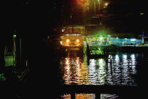被撞客轮自行驶回码头。 新快报记者王飞/摄 事发番禺莲花山港附近水域,相关人员被带走调查 昨晚7时45分许,距番禺莲花山港十几分钟路程的浮莲港水道,一艘香港开往莲花山港的“商埠号”高速客轮,与一艘名为“粤广货0127”货轮相撞,造成2死9伤。据悉,该客轮属于番禺某客运公司所有,具体情况有待相关部门进一步调查。记者获知,死者为一男一女,均为荷兰籍,男64岁,女63岁,初步怀疑为跟团旅客。事发时,由于货轮撞上客轮左舷,两死者坐在客轮左舷附近不幸身亡。 昨晚8时许,出事客轮自航回莲花山码头,9名伤者被送往医院救治,剩余旅客已被妥善安置。而肇事货轮被当场扣留,相关人员被带走调查。 |