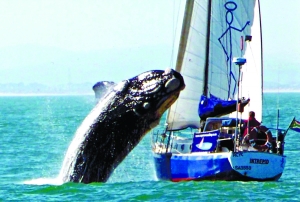 40吨鲸鱼跃上游艇