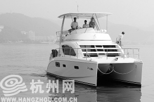 浙江第一艘自主研发制造的世界顶级双体豪华游艇昨天早上正式在富春江下水试航。这艘售价60万美元的游艇由奥运赛艇制造商――杭州飞鹰船艇有限公司制造,在试航5次后,将直接驶往游艇的买家所在地泰国。 产量和销量排名全球第二的双体豪华游艇制造公司南非罗宾逊游艇公司与“飞鹰”合作,双方投资6000万美元以上,在富阳进行豪华游艇的贴牌生产。游艇由世界500强美国“TU”游艇公司总经销,主要销往环太平洋地区。今年,飞鹰共将制造16艘豪华游艇,游艇最大航行速度是12节(1节=1852米/小时)。 |