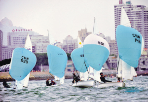 470级帆船精英赛雨中开赛 山东男儿独领风骚