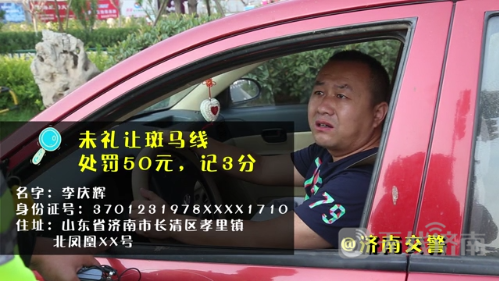 资料图 首次曝光的是槐荫大队6月15日、16日对机动车在斑马线前不礼让行人的违法行为的整治,在经十纬十二路口共查处机动车不礼让行人违法行为10起,并对驾驶人处以罚款50元、记3分的处罚。