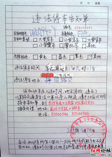 作为最热心的长沙市普通市民,我也开出了长沙市老口子交通监督大队第一张罚单!
