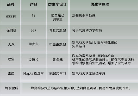 运用到汽车上的生物仿生学技术。