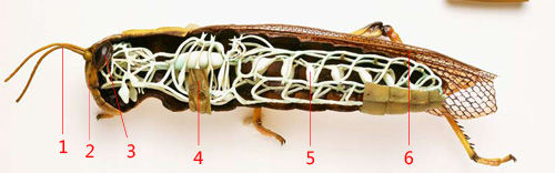 触角:触角除触觉、嗅觉外,还有其他功能。一旦丧失触角,蝗虫就几乎失去了除视觉外的所有感觉,而蝗虫分辨物体主要是通过嗅觉而不是视觉。