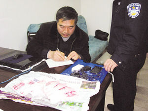 何先生在签收失而复得的7万元现金。 万凌云 摄