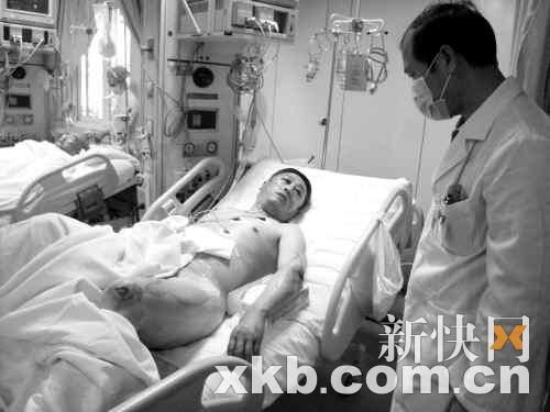 的士司机的头部与身体受重伤。 新快报记者 黄学民/摄 新快报4月28日报道 25日下午5时左右,深圳福田区益田社区牌坊附近,公交车司机甄东升与的哥袁××因为车辆停靠问题产生争执,甄东升下车用铁锤连续击打袁××,并开车把袁××强行拖了几十米,导致其头部与身体重伤,生殖器被全部磨掉。甄东升随后弃车逃逸。记者昨天从福田警方获悉,专案组已掌握并锁定了犯罪嫌疑人甄东升的去向。 据记者了解,事发时,袁××抓住公交车前部的雨刮器试图阻止公交车开走,但甄东升依然开车。袁××被拖行了二十多米后,因为力气不够而松手滑入车底,他的衣服被公交车的底盘挂住,因此又被继续拖行了几十米。 记者昨天下午在福田人民医院ICU房见到了袁××,他已能断断续续说话。据医生介绍,他的全身多处大面积擦伤,左侧睾丸和3/5以上的阴囊消失,右侧睾丸完全破裂,已经丧失生殖能力和性功能。 袁××的妻子靳女士说,希望警方能尽快抓到肇事者。据了解,肇事的公交车司机甄东升在职期间曾多次被乘客投诉,因此接受“回炉”培训,出事当天,是他重新上岗后的第二趟出车。目前,深圳巴士集团已垫付了部分医疗费用。 (本文来源:新快报) |