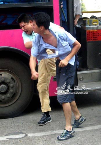江西都市报7月14日报道 昨日上午9时许,在南昌市洪城路与桃花路交会处,一辆大客车与一辆黑色桑塔纳发生轻微剐蹭。随后,小车司机与大客车司机发生口角。话不投机,两人不顾市民的劝阻,在马路上大打出手。经过一阵激烈对搏,双方打得筋疲力尽时,市民才把两个“火气”大的司机拉开。现场一名市民说,就为一点小事情,在大街上大打出手,这样既不文明,也不雅观,实在有损省会城市的形象。 (本文来源:《江南都市报》 作者:欧阳苏敏 刘虎)
