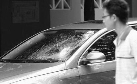![]() 第三撞,父子俩将汽车的挡风玻璃撞烂