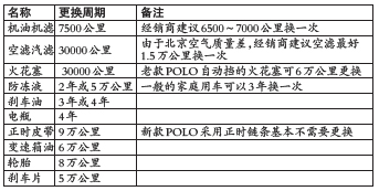 点评:奥迪A6L的2.0T车型厂家建议5000公里开始首保,2.4L和3.0L是7500公里进行首保。但如果一年不用,即使行驶里程为零也需保养。 根据车型型号的不同,奥迪火花塞的更换里程是6万公里或者是9万公里,经销商表示,有些奥迪的车主不管型号的差异,火花塞使用寿命还未到就要求更换,这纯属浪费。 奥迪A6L的电瓶是四年更换一次,不过汽修一厂技术科长许行宇先生表示,如果保养得很好,电瓶用6年也是不会出问题的。 奥迪A6L在平常保养过程中需要注意的是,每行驶2000公里或者是每用掉两箱机油时就必须检查机油液面,可能会出现机油液面低于下限。 上海大众POLO