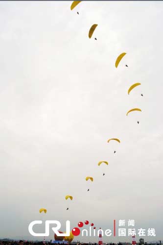 机翼行走 9月30日,2010年首届中国(重庆)国际飞行爱好者年会暨国际通用航空器展示交易会在重庆梁平县开幕。 来自中国及欧美的专业飞行表演队为在场冒雨观看表演的约三万观众上演了精彩的三角翼特技飞行、固定翼飞机通场飞行表演、“机翼行走”、“空中追逐”等特技飞行. |