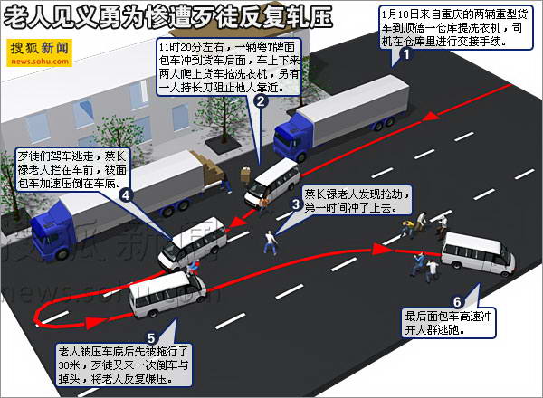 光天化日 歹徒开车抢劫 见义勇为 老者惨遭轧腹