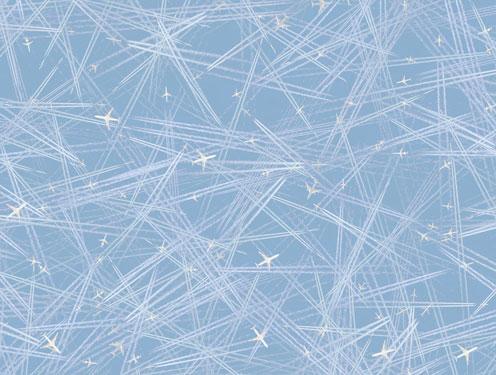 如图所示,这张图片描绘的是11000架飞机的尾气轨迹,这相当于美国每8小时的商业航班数量。据悉,全球每天大约起飞85000架商业航班,预计到2050年每天将起飞170000架商业航班。 一架飞机穿越大西洋需要60000升煤油,这相当于普通汽车驾驶50年所需的燃料,同时,这将产生140吨二氧化碳,以及750公斤氧化氮。 4、飞机尾气轨迹特写