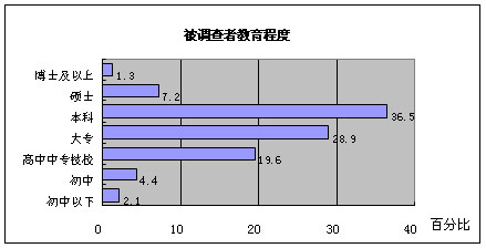 被调查者中,本科和大专学历的比例较高,两者之和所占比例为65.4%,本科及以上文化程度所占比例为45%。总体来看,被调查者主要集中在中等水平的教育群体。 4、家庭状况