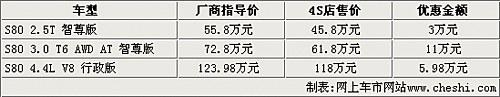 沃尔沃S80作为该品牌旗下上一代的旗舰车型,即将被刚上市的S80L取代。据了解,国产沃尔沃S80L上市后,老款S80全系最高将优惠11万元。详情如下: