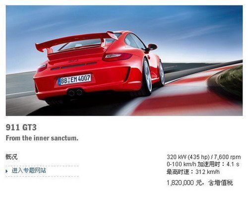 ![]() 新款GT3外形、动力和配置方面都进行了调整:2010款GT3用3.8L发动机替代了老款车型的3.6L机型,并对气门正时系统机型了升级——首次对进/排气系统同时进行调节。