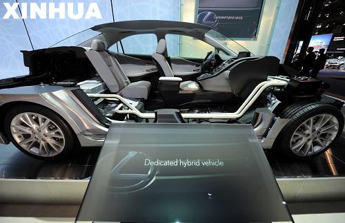 这是4月8日在美国纽约举行的纽约国际车展媒体开放日上拍摄的雷克萨斯2010款Hs 250h混合动力车的剖面模型。