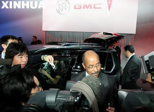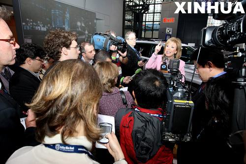 4月8日,在美国纽约举行的纽约国际车展媒体开放日上,美国通用别克-庞蒂亚克-GMC部门副总裁苏珊·多彻提被记者团团包围。 |