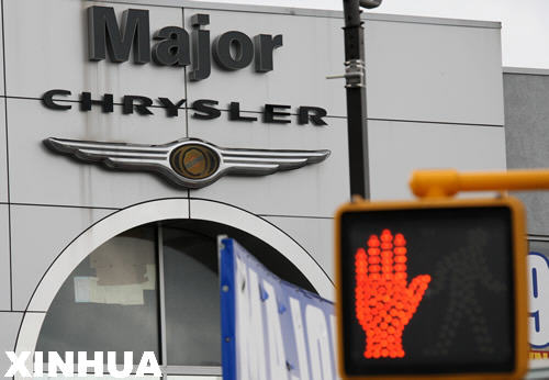 这是4月7日在美国纽约的一处汽车销售中心拍摄的克莱斯勒的标志。新华社记者刘欣摄
