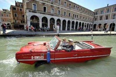 据路透社报道,水陆两用车日前亮相威尼斯。