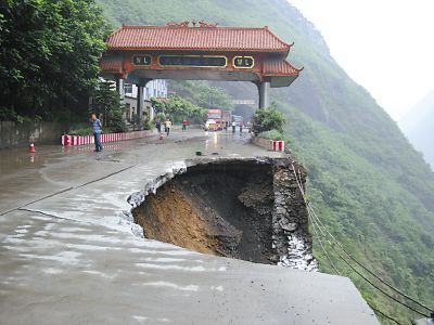 重庆国道319线塌方 货车坠下30米悬崖(图)