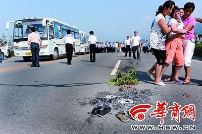 华商网8月3日报道 8月2日上午8时30分左右,户县庞光镇华丰村一位60多岁的老人骑着电动自行车带着10岁的孙子二毛(小名),在邻村华东村村口被一辆旅游大巴撞上,当场身亡;大巴上的51名乘客被死者家属堵在车上7小时,有乘客因车内温度高而昏迷。 事发后,肇事司机就被警方控制,随后被刑拘。 大巴疾驶爷孙俩被拖出几十米 昨日上午11时许,华东村村口的西安环山公路已被警方戒严,东边100米外停着一辆旅游大巴,车号是陕AD0676,车玻璃已被砸碎,特警严密围在车四周,而特警外又围着一群人,情绪比较激动,不断向车里谩骂,呼喊声、哭叫声乱作一团。 马路上有50多米长的血迹,一直延伸到大巴车跟前。“我娃太可怜了,才10岁呀,为什么不紧急停车,把我娃拖了几十米,活生生给挤死了……”一位中年妇女在车前嚎啕大哭。 原来,出事的是华丰村60多岁的老人崔兴华和他上三年级的孙子二毛。 目击者邓雪莉是华东村村民,也是出事路段的环卫工人。“我听见叭的一声,扭头一看,一辆大巴车疾驶而来,车前保险杠位置挂着一辆自行车,还有两人被卷入车底,血肉模糊,当时我就吓蒙了,两腿发软,想喊人喊不出来,后来附近村民赶到打了急救电话……”邓雪莉流着眼泪,嘴唇哆嗦着。“当时我瘫在地上,二毛是从车底掏出来的,已经不省人事了。” 家属激动堵大巴砸碎玻璃 事故发生后,户县县政府领导立即赶到现场,但死者家属情绪激动,不让车上的人下来,双方一对峙就是7个小时。 昨日中午,西安气温最高达到33℃,车内由于封闭也越来越热,时间一分一秒过去,车上乘客情绪也激动起来,还有一些乘客突然发病。大约12时30分左右,双方发生冲突,死者家属将车玻璃砸碎。“大家保持冷静,我们一定会严肃、公正处理事情,车内乘客确实发病了,几个小时没吃没喝没上厕所,需要救治,大家不想看到事态进一步扩大,请让开赶快救人……”户县副县长丁景玺给死者家属耐心做工作。 紧急救援从窗口抱出发病乘客 此时,死者家属内部也出现不同意见,有人认为,应该赶快救治乘客。 13时45分 丁景玺站在驾驶室外,把一名发病女乘客从窗口抱出,紧急送往医院。 13时50分 第二名乘客从窗口抱出,“我还有7岁半的娃娃在车上……”说罢便昏过去。 14时06分 双方再次发生冲突。 14时14分 第三、第四名乘客救出。 14时19分 7岁半的张长羽被救出,孩子脸色通红,“我要妈妈,我要妈妈”。 14时32分 一名戴墨镜的中年妇女和6岁半的女儿被救出,母女俩泪流满面,痛哭不止。 14时40分 车上还有40多人,急救人员从窗口钻进,给乘客输液,并进行安抚工作。 14时42分 车内一中年男子说自己刚做完鼻咽癌手术需要下车透气,也被抱出。 这时,死者家属提出严重抗议,要求不能再救人,救援不得不被迫终止。 15时54分 在丁景玺等人的劝解下,剩下的乘客换乘户县运输公司的大巴离开。 而被解救乘客均被送往户县济仁医院进行身体检查,并逐一进行心理安慰疏导。除3名乘客需要治疗外,其余人于昨日17时30分乘车返回咸阳。 为什么堵乘客? 家属称怕人走了事故没人管 一起简单的肇事案,为什么要堵车上的乘客呢? 死者家属认为,车把人撞了不能让车走,更不能让车上的人走,否则事故就没人管了。现场还有一名家属说:“司机看不见撞人了,难道乘客也都看不见?” 车上乘客则认为,他们和司机是简单的旅游合同关系,不是一个单位的人,也不是一家人,撞人了司机应承担法律责任,和他们没有关系。 而死者家属的激动情绪让前来处理事故的交警、县政府领导感到非常棘手,他们积极寻找解决问题的突破口。 ![]() 昨日下午3时54分,解救出的乘客被送往医院。此时死者家属仍沉浸在悲伤中 事故调查 肇事车可能没旅游营运手续 据了解,车上51人是由咸阳蓝天户外运动俱乐部组团,前往户县太平森林公园旅游的,车辆也由该俱乐部提供。 肇事大巴前方有张《禁行线路通行许可证》,发证机关是“西安市公安局交警支队”,时间“2009年6月29日”,持证单位是“高科旅游公司”。记者和高科旅游公司取得联系,该公司有关人士说:“该车早已下线,没有旅游营运手续”,并说这是一辆私户车。记者问:“既然和你们没关系,为何持证单位是你们呢?”该人士表示不知道。 记者在现场还看到很多散落的司机名片,“杨敏,高驾司”,单位是“客车租赁服务公司”,地址在张家堡。记者拨通了名片上的电话,接电话者是户县公安局交警大队民警。该民警说,杨敏(35岁)正在接受调查,他是西安市碑林区安东街人。 事故反思 环山路与村庄的交叉口应设减速带 事故发生后,市民邓女士致电本报称,西安环山公路路口较多,所以事故隐患严重,华丰村已有6名村民在路上被撞死,建议在路口设置红绿灯,并设立警示标志,避免悲剧再次发生。 户县公安局交警大队有关民警说,环山公路路况较好,因此车速一般都比较高,而涉及村庄的路口又没有减速带,加上附近村民交通意识也较差,只要一出事就是重大事故,因此,上减速带或设置警示标示非常重要。 (本文来源:华商网。 更多精彩内容,请登录华商网 http://www.hsw.cn/ 作者:宁峰) |